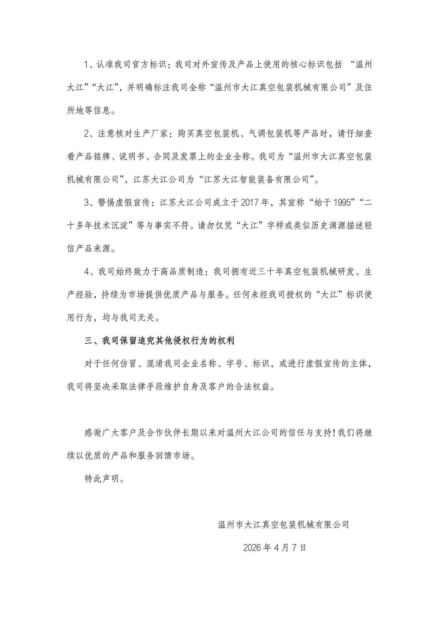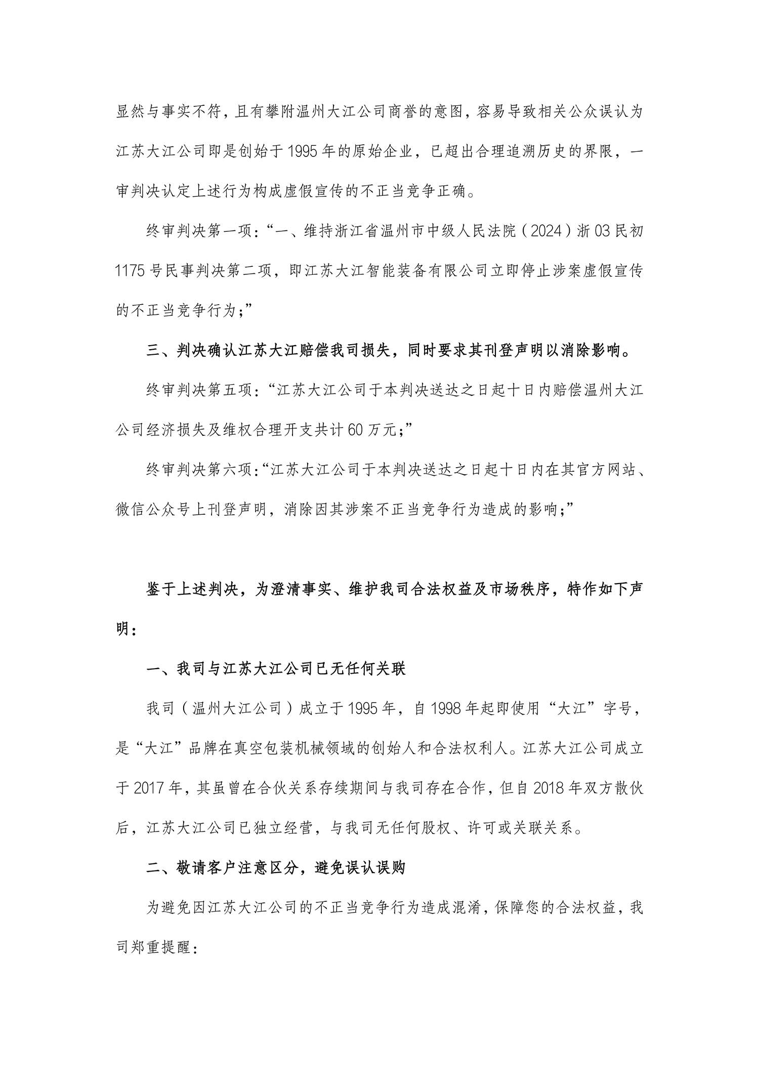 關(guān)于“大江”品牌的鄭重聲明2025-09-01